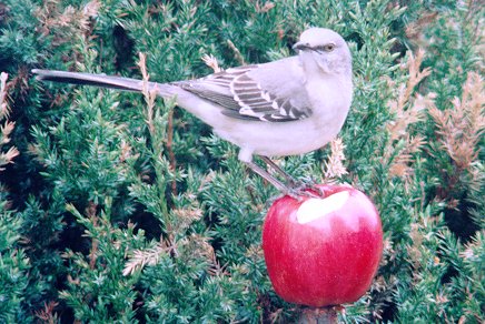 • Mockingbird - Berries, Apple feeder - feeding baby - in flight