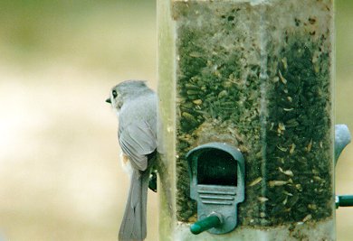 • TuftedTitmouse - Sunflower seed, Mixed seed feeder, Suet